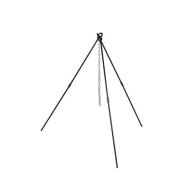 Met deze driepoot kan je makkelijker een pan boven een vuur hangen. Ook heeft deze een klein pakvolume zodat deze bijna altijd mee kan. Een nadeel is wel dat niet de ketting verstelbaar is, maar door middel van het ophanghaakje te verhangen.
