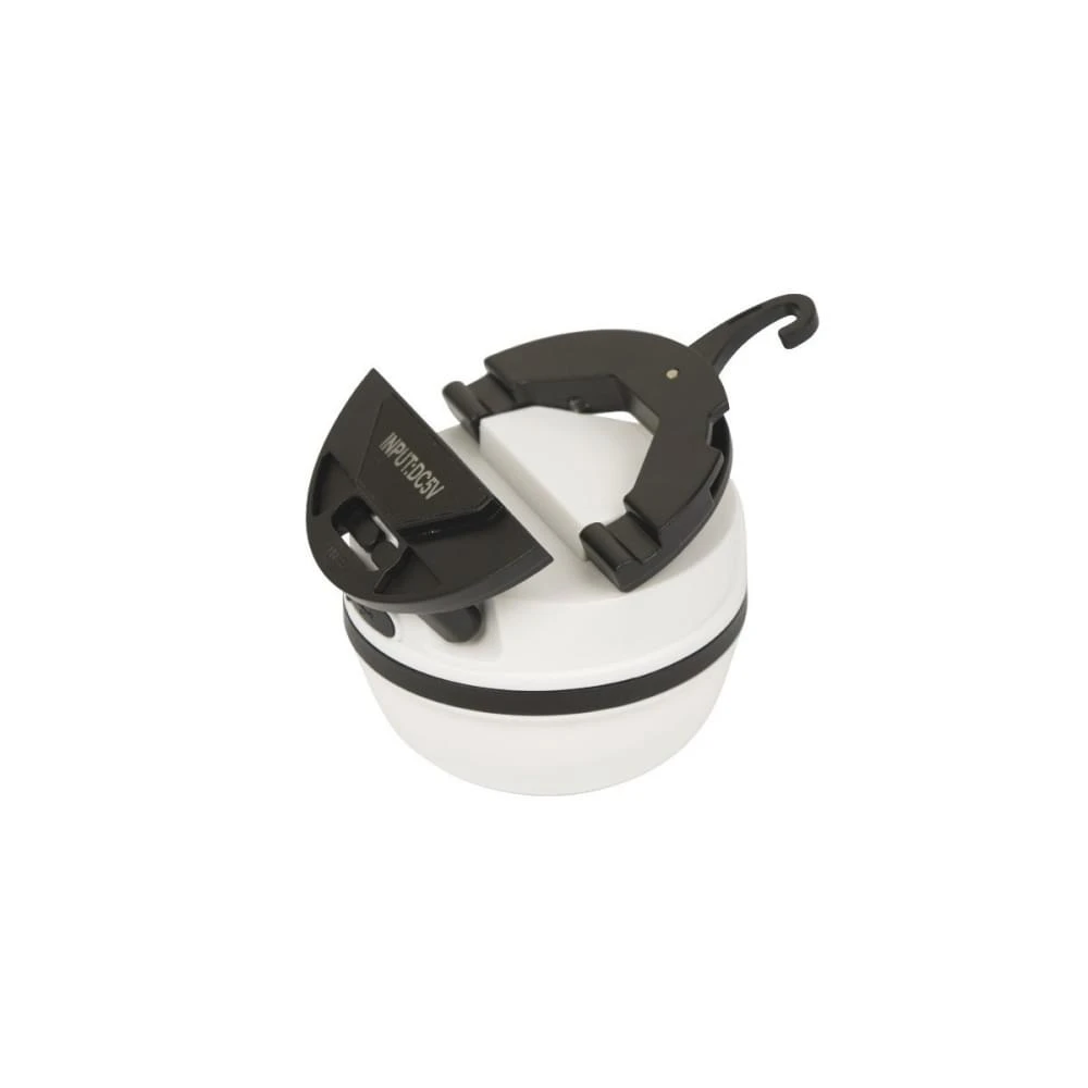 De Bo-Camp Kuma Hanglamp is een compacte en multifunctionele lamp. De lamp kan zowel hangend als liggend en staand gebruikt worden. Ook kan de magneet gebruikt worden om de lamp op ijzeren voorwerpen te plakken. De lamp zelf heeft 3 verschillende lichtstanden en is spatwaterdicht. De Li-ion accu kan via het meegeleverde snoer opgeladen worden en gaat vervolgens 7 tot 35 uur mee.