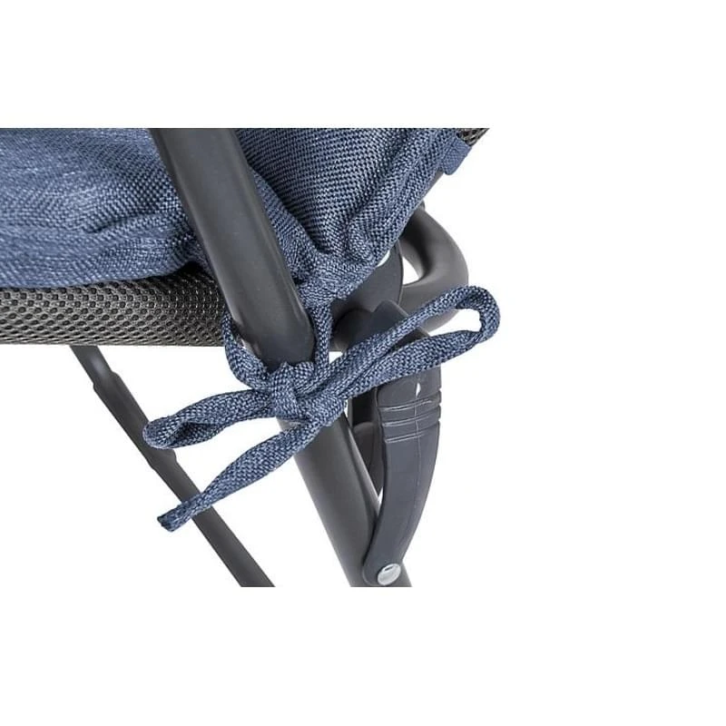 Dit kussen van Bo-camp blijft altijd netjes op zijn plaats zitten door de meerdere bevestigingspunten. Voorzien van een omgestikte rand bovenin en halverwege en onderaan koortjes om de hoes mee vast te maken aan je campingstoel kan dit kussen geen kant op. Je kan hem dus gemakkelijk in je stoel laten zitten, ook als je hem inklapt of opbergt. Â