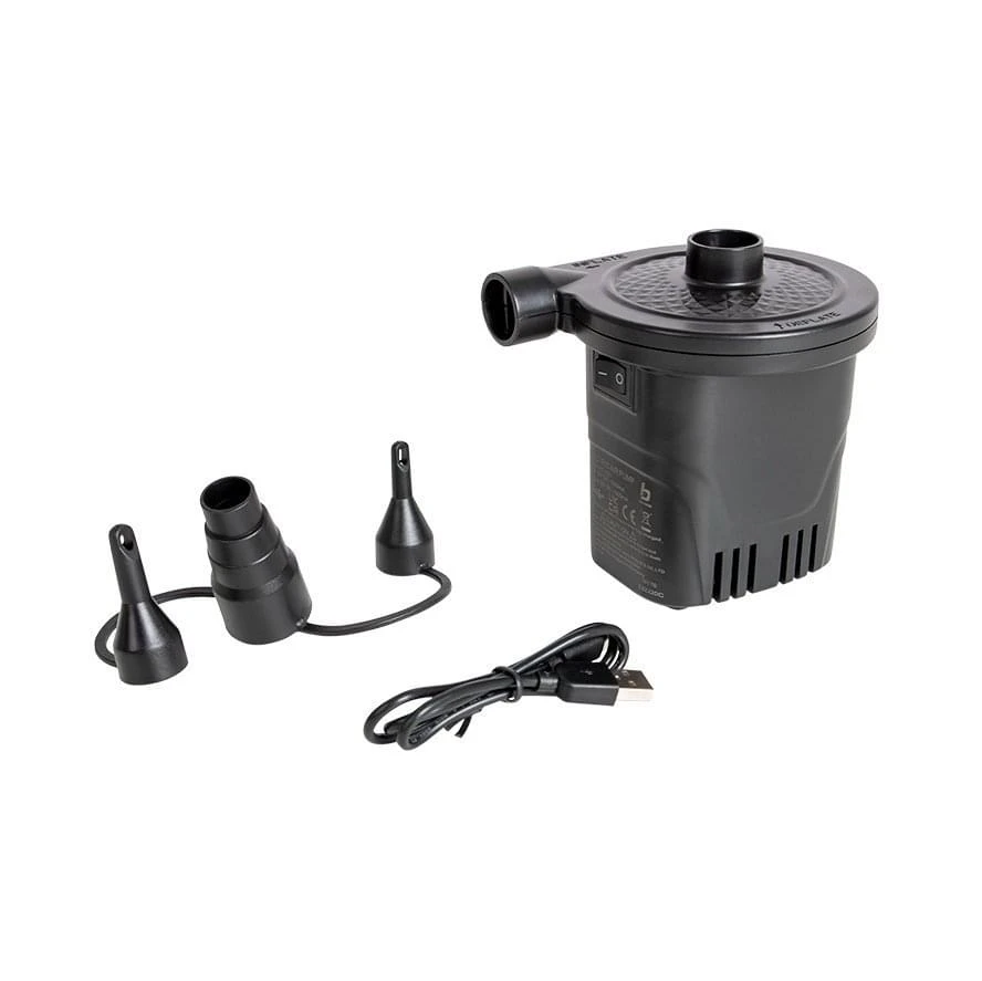 Deze elektrische Oplaadbare Pomp van Bo-Camp is voorzien van een Li-ion batterij die ook nog eens geschikt is als 4000 mAh powerbank. De pomp is eenvoudig op te laden via 12V of 230V met de meegeleverde USB kabel. De Led-indicatoren geven de status van de batterij aan zo dat je goed voorbereid op pad kunt gaan. Hij blaast 250 liter per minuut dus je boot, Sup of luchtbed is enkele minuten opgeblazen.Â